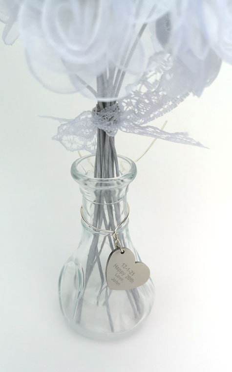 message on a card or an engraved tag attached to the vase and gift boxed.