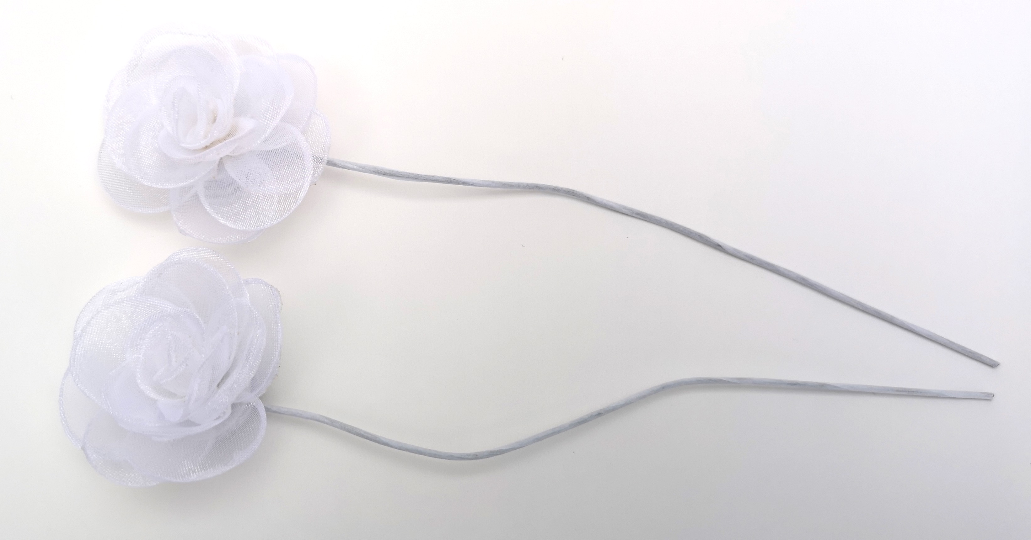 The petals of these small flowers are made of beautiful lace fabric. Set is just over 7" tall and 4" wide in a 3" glass vase. Each petal is around 1 and a half inches wide with the bundle of blooms similar in size to a baseball.